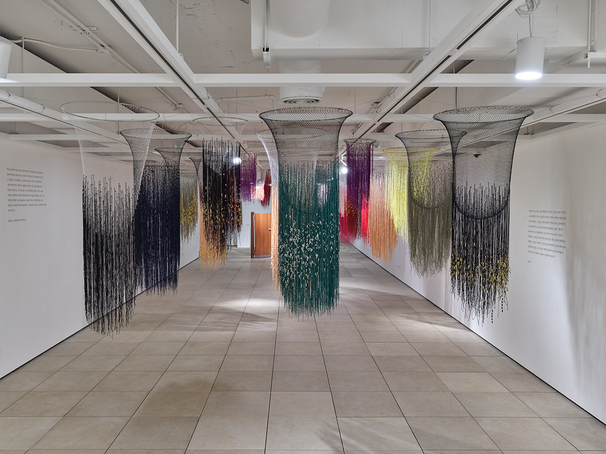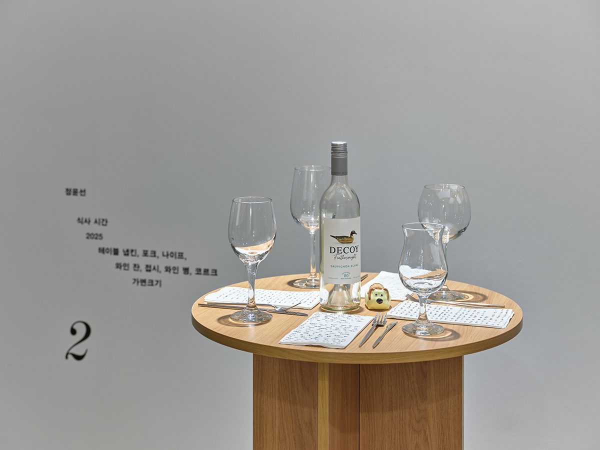 문이라는 것은 외부와 경계를 만들면서, 동시에 외부와 내부의 경계를 연결할 수 있는 것이다. 네 번의 식사 중에서 첫 번째 식사를 할 때, 한순간 나는 의지와는 상관없이 나의 작업이 이미 시작되었음을 직감했다. 예술이라 규정하지 않은, 가장 자유로운 순간에. 누군가는 예술을 일상과 연결한다는 것이 두려울 수 있고, 또 누군가는 예술과 일상이 서로를 포함한다는 사실이 예술의 힘을 연약하게 만든다고 느낄 수도 있다. 하지만 우리는 삶에서 예술의 문이 일상을 향해 열려 있음을 몸으로 느끼기에 둘 사이의 연결을 본다. 그럼에도 불구하고 예술가에게는 일상과 ‘구별된’ 예술이라는 것이 있다. 일상을 향해 열린 문을 닫았을 때, 그 진공 상태에서만 느낄 수 있는 무언가가 있다는 것, 바로 그것을 위해 예술가는 예술을 지속한다. 문밖의 손님을 기다리는 것은 삶을 예술로, 예술을 삶으로 초대하는 우리의 방법론을 의미한다. 문밖의 손님을 기다린다는 것은 우리가 이 관계 안에서 서로 주고받게 될 에너지와 아직 미완의 상태에 머물고 있는 결실을 기다린다는 의미이기도 하다. 최성임은 첫 번째 식사 자리에서 “문밖에 어떤 손님이 올 거예요.”라는 표현으로 김아해와 자신의 협업 과정을 비유했다. 둘은 서로 에너지를 주고받으며, 물리적으로 결정되지 않은 형상을 조형해 나갔다. 이 문장이 담고 있었던 원래의 의미와 가장 가까운 의미에서, 우리는 문밖의 손님을 기다리듯이 에너지와 결실을 기다린다. 당신은 “문밖에 어떤 손님이 올 거예요.”라는 말을 듣는 순간부터, 손님이 오기를 기다리게 될 것이다. 비유와 추상화를 걷어낸 가장 현실적인 자리에서, 이 문장은 전시장을 방문하게 될 관람자에 대한 기다림과 환영을 의미한다. 당신이 문밖의 손님이 되어 주기를, 그리고 그 문을 열어 우리가 마주했던 손님들과 즐거이 인사를 나눠 주기를 기대한다.